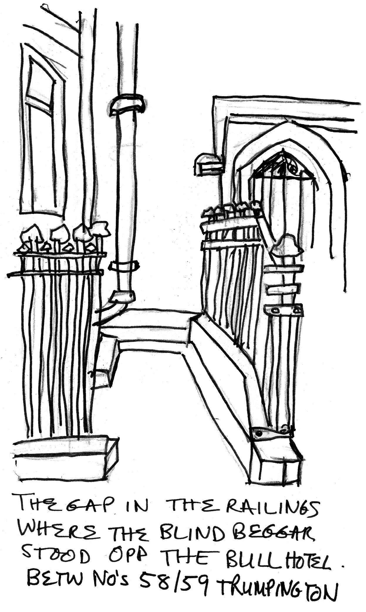 58/59Trumpington St: A blind beggar stood here. He had a dog and a