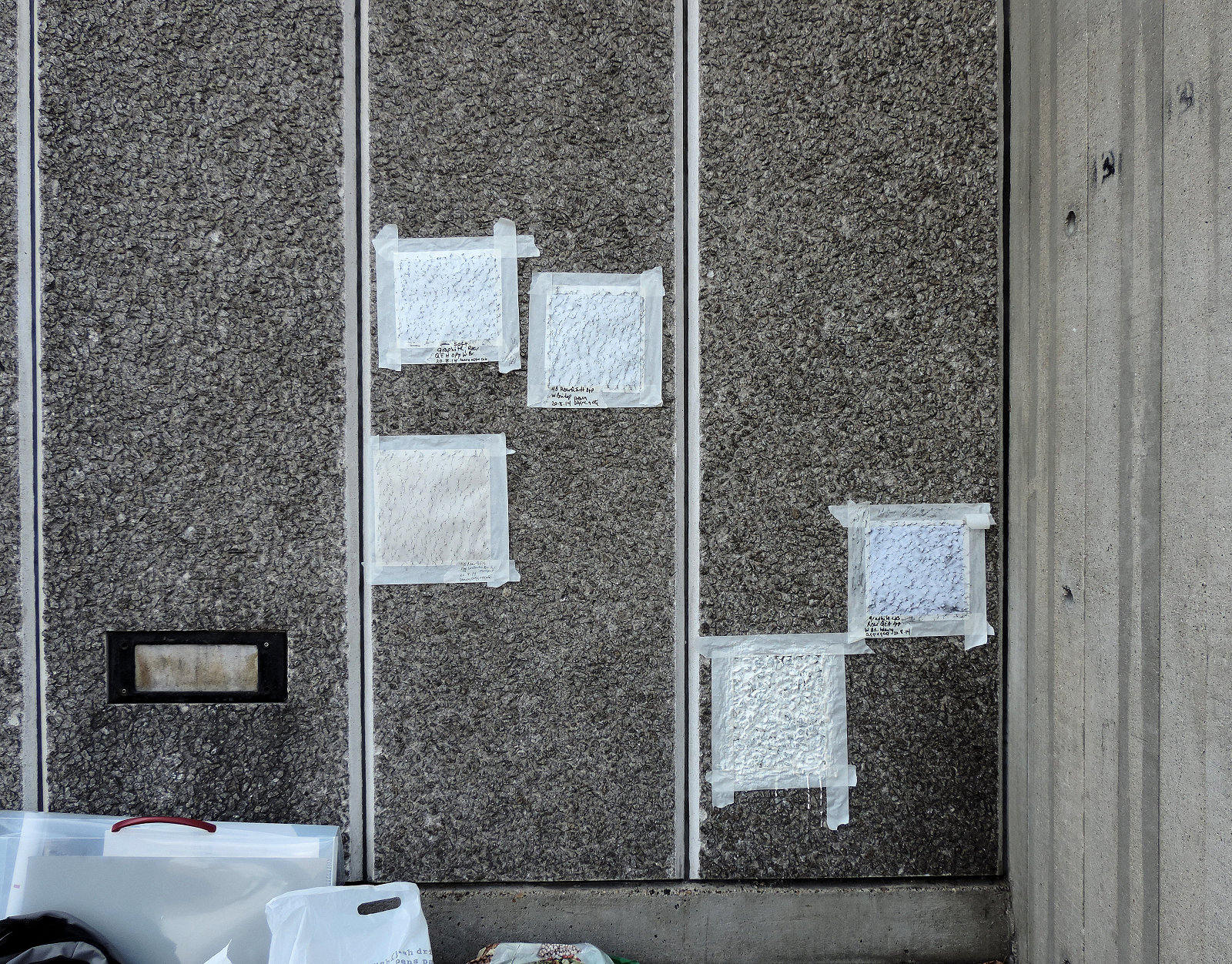 Test rubbings and latex cast on pre-cast, coarse-aggregate panels, rear of Queen Elizabeth Hall